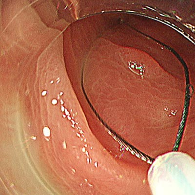 検査中に見つかったポリープは10mm以下のポリープであれば、その場で「コールドスネアポリペクトミー」という安全性の高い方法で切除が可能です。